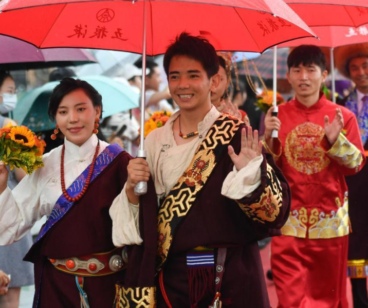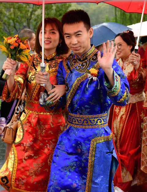 10月6日,第23屆中國西湖情玫瑰婚典在浙江杭州浪漫上演,來(lái)自全國各地56個(gè)民族的100對新人受邀在西湖景區牽手漫步,喜結連理。