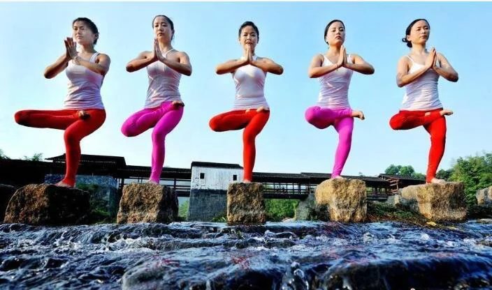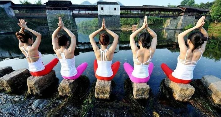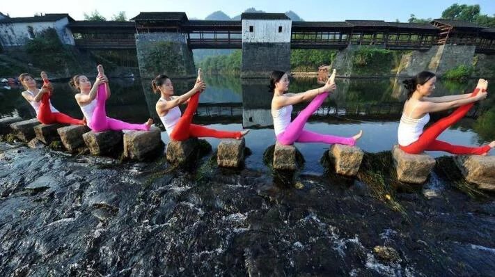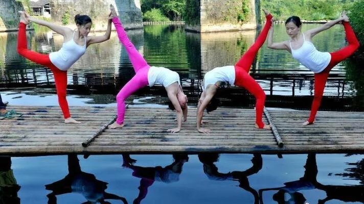 8月20日,江西省婺源縣5名瑜伽達人,演繹各種造型的水上瑜伽技藝,從而讓這一高雅體型訓練技藝融入大自然,形成天人合一的美麗景象。