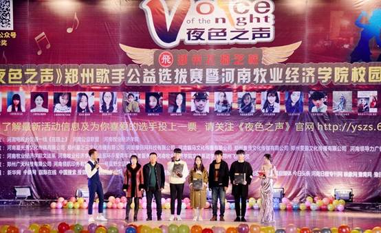 12月1日晚上,由河南星光秀文化傳媒有限公司《夜色之聲》鄭州歌手公益選拔賽暨河南牧業(yè)經(jīng)濟學(xué)院(英才校區)歌圓滿(mǎn)結束,最終脫穎而出六位選手、十五位優(yōu)秀歌手及兩位最佳人氣歌手。