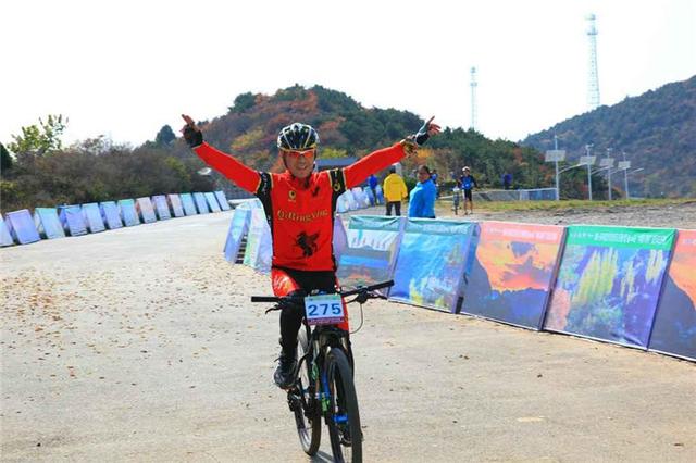 經(jīng)過(guò)幾個(gè)小時(shí)的激烈競速,最終來(lái)自安道中國車(chē)隊的吳興棟以1:37:24.106獲得男子組冠軍;鄧湖平以2:04:55.878獲得女子組冠軍。圖為青龍峽陪嫁妝村口,吳興棟雙手歡呼,慶祝獲得冠軍。