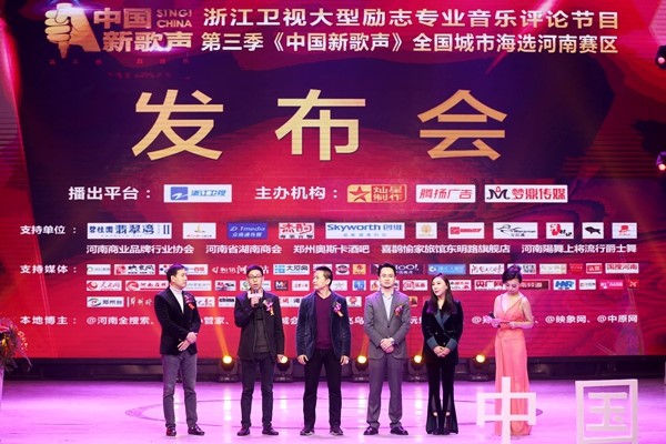 1119日下午,第三季《中國新歌聲》河南賽區發(fā)布會(huì )在鄭州舉行。全國海選負責人葛中華,湖北、安徽、云南賽區等核心負責人,浙江衛視導師戰隊曾敏杰、邵元及上季各省賽區冠軍學(xué)員趙晨、王榕、劉佳霖等助陣現場(chǎng)。