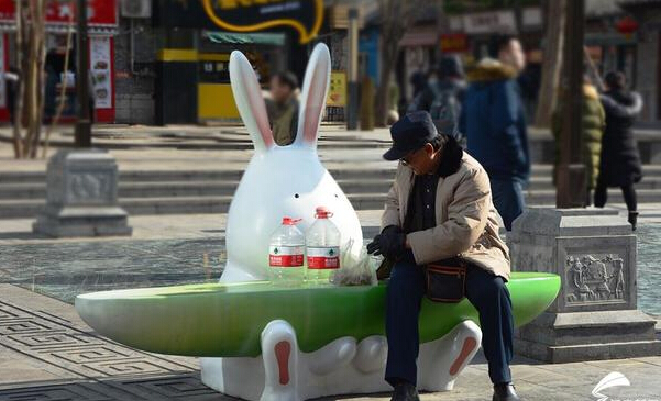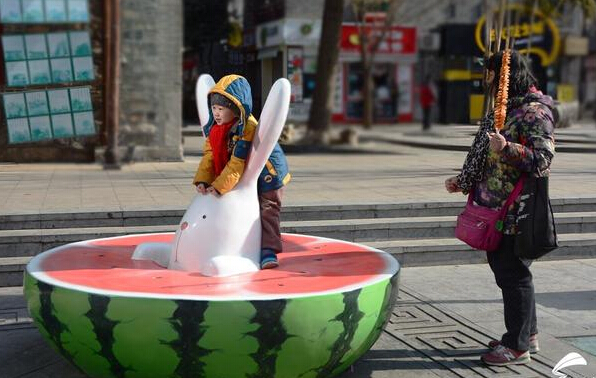 11月24日,記者途徑濟南寬厚里,發(fā)現新增設了超萌小兔吃蘿卜凳子,造型憨態(tài)可掬。不僅是游客邊坐邊吃的小憩區域,同時(shí)也是孩子們的樂(lè )園。