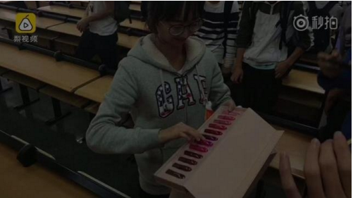3月7日,華南理工大學(xué) 大一機械三班的男生們給班里唯一一名女生送了盒口紅。女生表示,作為班上唯一的女生,開(kāi)學(xué)至今她幾乎連喝水都沒(méi)自己開(kāi)過(guò)瓶,從來(lái)沒(méi)有自己提過(guò)行李箱。