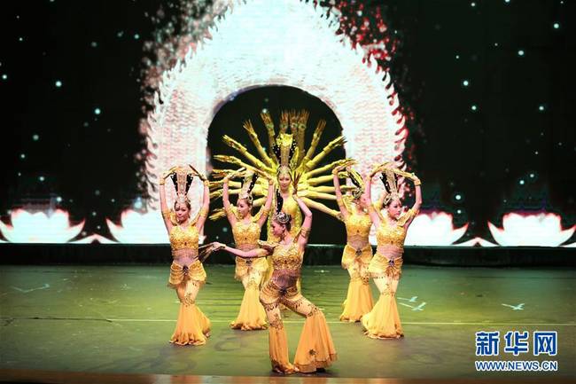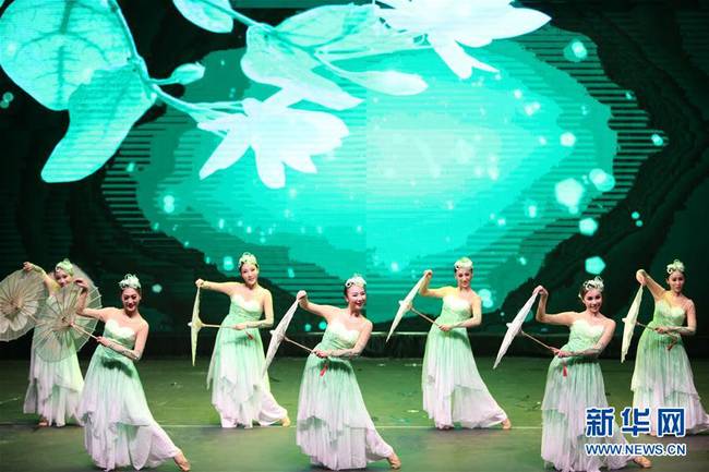 6月24日,在科威特哈瓦利省,廣西文化藝術(shù)團的演員表演舞蹈。由中國駐科威特大使館和科威特文化、藝術(shù)與文學(xué)委員會(huì )聯(lián)合舉辦的“美麗中國·心儀廣西”文藝演出24日在科威特哈瓦利省舉行。此次文藝演出是正在舉辦的科威特第21屆國際音樂(lè )節的一部分。