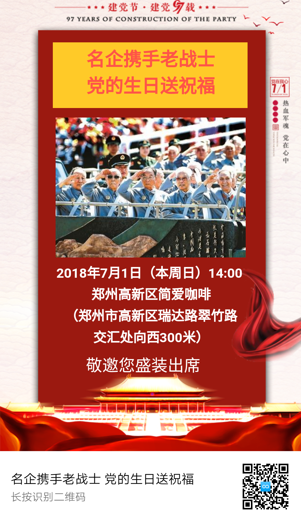 7月1日,在高新區簡(jiǎn)愛(ài)咖啡即將舉行維羅納國際模特大賽名企攜手解放鄭州老紅軍慶祝黨的97歲生日。
