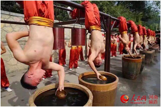 在2018嵩山少林武林大會(huì )開(kāi)幕式現場(chǎng),萬(wàn)余名來(lái)自少林塔溝武術(shù)表演團的弟子在整個(gè)嵩山少林景區山門(mén)、建筑及主干線(xiàn)排列不同的方陣,向中外來(lái)賓展示獨一無(wú)二的少林武術(shù)表演!少林拳、九節鞭、雙節棍、自由搏擊等少林絕技震人心魄;少林童子功、少林器械對練、鐵砂掌、倒吊功、上罐功等少林功夫輪番上演,更有幾十余名小沙彌手敲木魚(yú),展示禪定奧義,一動(dòng)一靜中,盡顯少林功夫“禪武合一”本色!