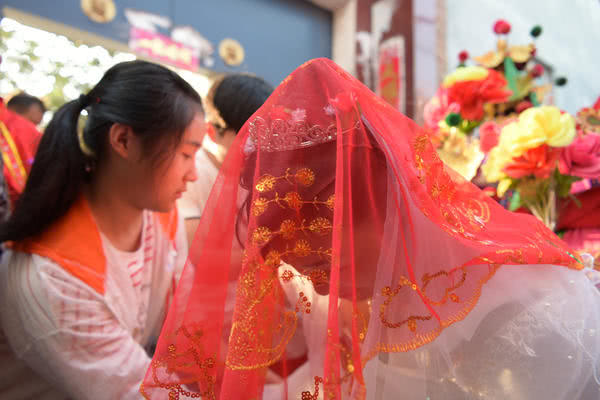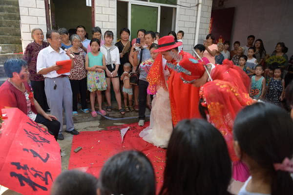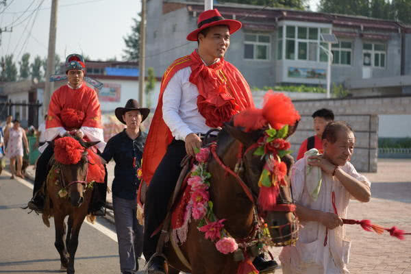 兩頭高頭大馬上,騎的是兩位帥氣的新郎;兩頂大花轎里,坐的是滿(mǎn)面笑靨的新娘!叭绱擞H,世間少有,真實(shí)開(kāi)眼界了!”一路上,觀(guān)“光”的人們嘖嘖稱(chēng)奇。上午8時(shí)10分,新娘被娶到了婆家。8時(shí)58分,隆重的典禮儀式結束,兩位新娘被兩位新郎抱進(jìn)各自的洞房。