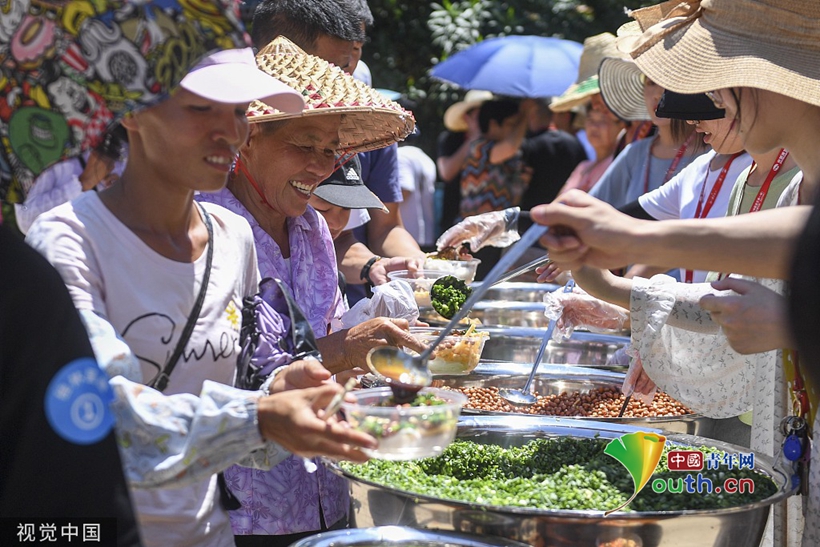 2019年7月24日,桂林一景區支起了一口面積達50平方米的巨型鐵鍋,女演員在10米高空向鍋中下米粉,邀請游人免費品嘗。