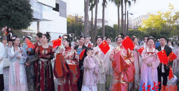 9月23日下午3點(diǎn),在澳大利亞的悉尼歌劇院、海港大橋、唐人街,出現了一群穿著(zhù)中國漢服的黃皮膚年輕人,他們揮舞著(zhù)國旗,和著(zhù)古箏、琵琶、二胡等純中國樂(lè )器演奏的伴奏,唱起《我和我的祖國》《我的祖國》,在新中國成立70周年之際,在海外,為祖國獻上祝福。
