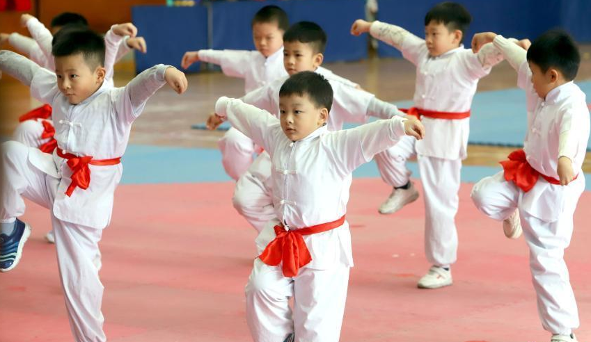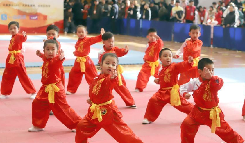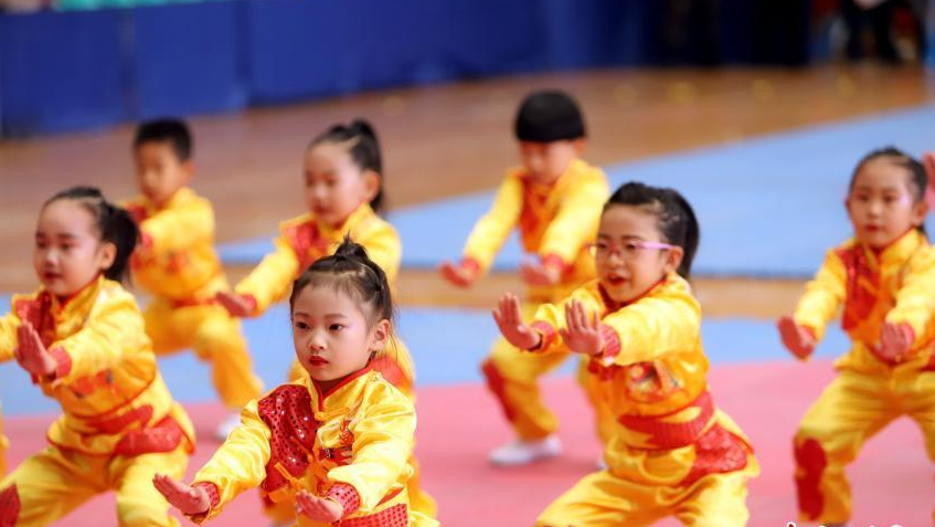 12月14日,天津市第四屆幼兒武術(shù)運動(dòng)大會(huì )暨天津北辰大運河武學(xué)文化交流大會(huì )在天津市四十七中體育館開(kāi)幕,近千名兒童參加此次大會(huì )。圖為武術(shù)招數有模有樣的“萌娃”。