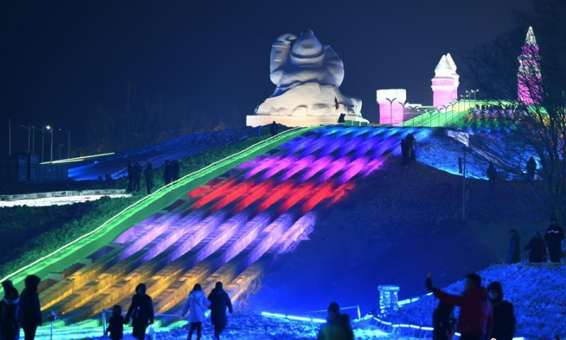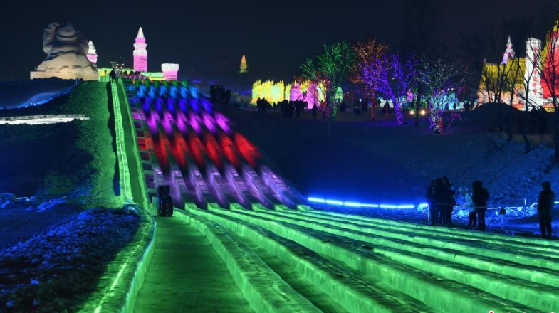 12月28日晚,長(cháng)春冰雪大世界開(kāi)門(mén)迎客,游客體驗420米超長(cháng)冰滑梯。長(cháng)春冰雪大世界總占地108萬(wàn)平方米,今年完成80萬(wàn)平方米,總用冰量、用雪量超過(guò)30萬(wàn)立方米,建造大型冰建、雪景,冰、雪雕等獨立景觀(guān)約130處。分為冬奧巡禮、冰頌、冰雪情緣、冰雪歡樂(lè )島、雪谷霧凇、奇石公園等六個(gè)主題。