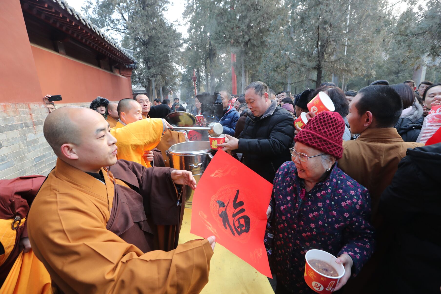 2020年1月2日,為農歷臘月初八,中國傳統的“臘八節”。今天上午十點(diǎn),在少林寺少林藥局門(mén)口舉行臘八節祈福儀式,隨后上萬(wàn)碗臘八粥被游客一搶而光。