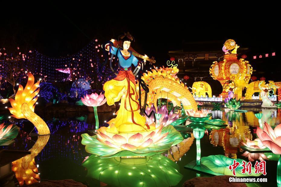 1月18日,西安華清宮景區內的唐宮大型燈組。本次燈會(huì )以“與星空對話(huà),與驪山共舞”為主題,展示眾多唐宮大型燈組,再現盛唐繁華景象。