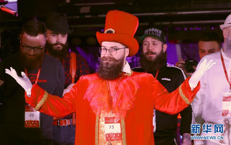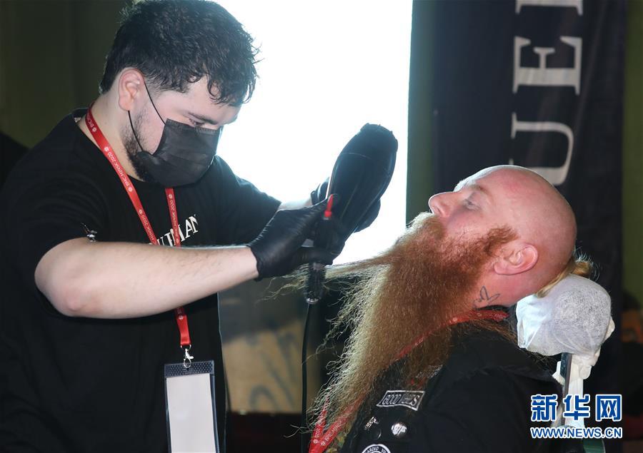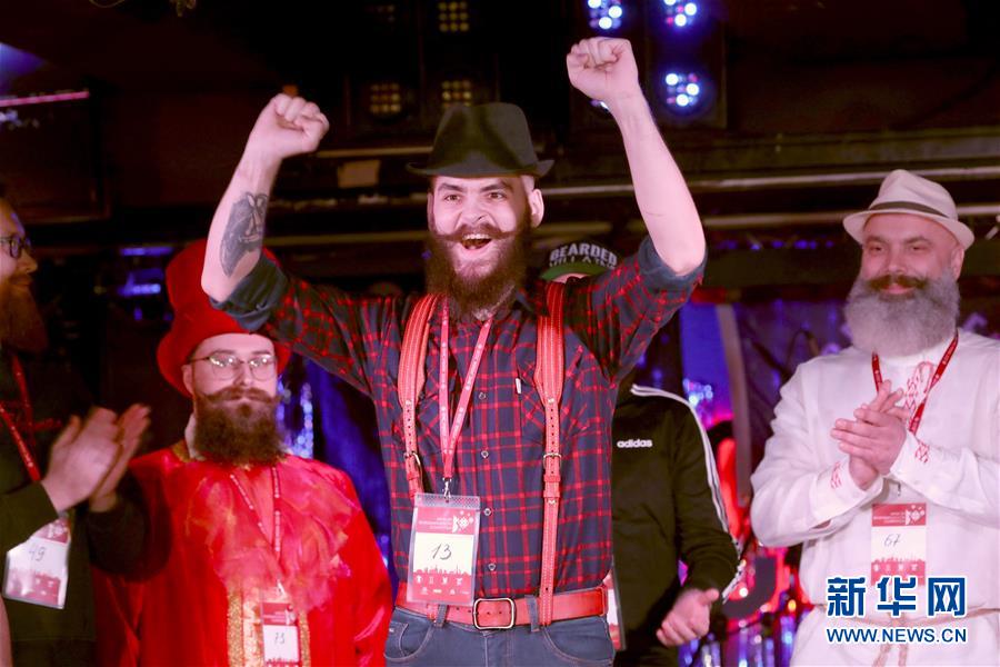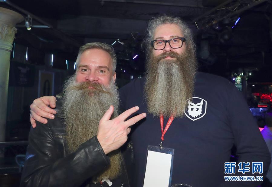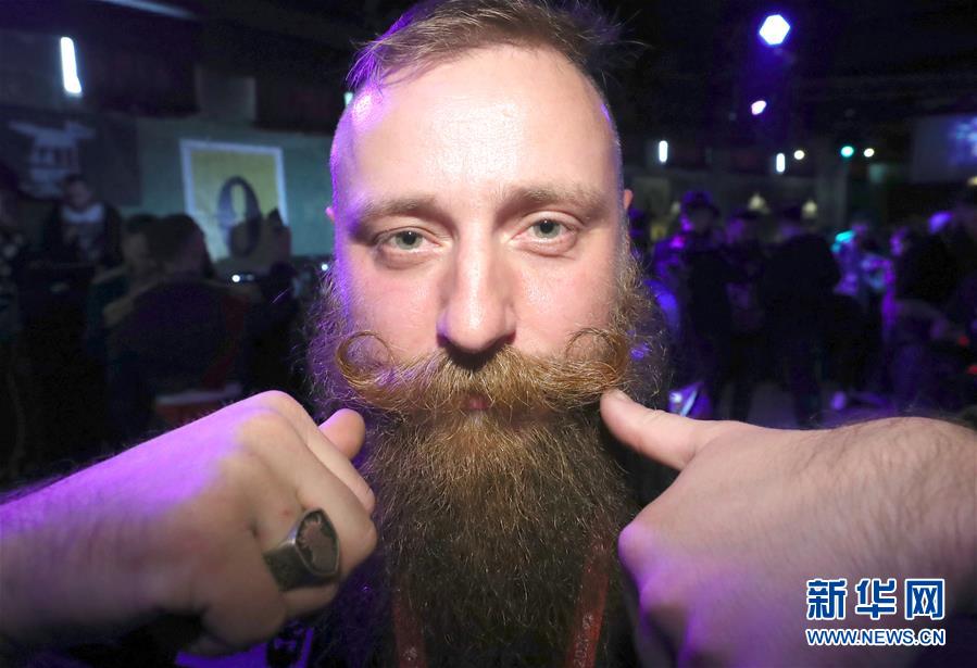 2020年2月8日,在白俄羅斯首都明斯克舉辦的國際胡須大賽上,參賽者展示自己的胡須。