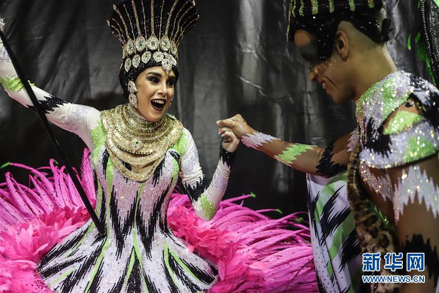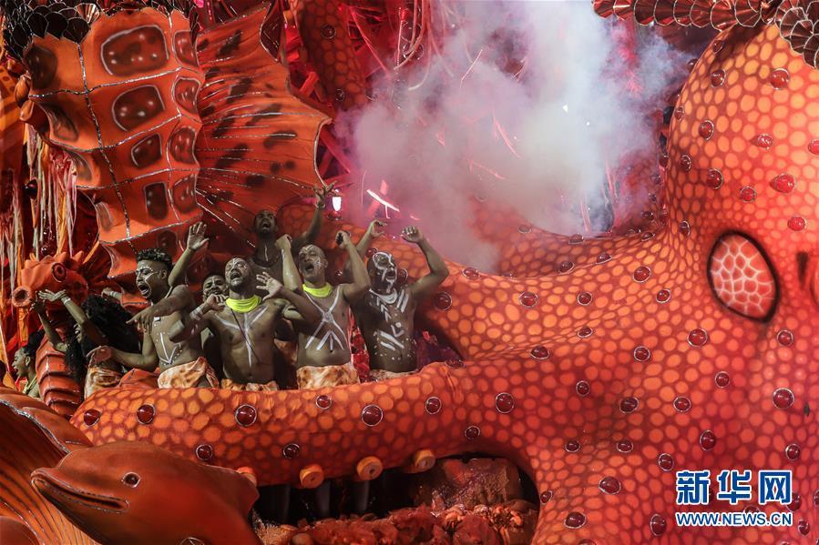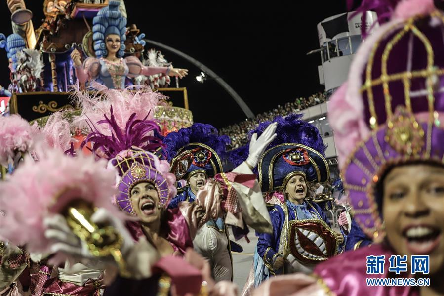 2月22日凌晨,巴西圣保羅桑巴舞校的演員參加狂歡節巡游。 2月21日深夜至22日清晨,2020年巴西圣保羅狂歡節桑巴舞校巡游開(kāi)幕,7支特級組桑巴舞校的隊伍在桑巴大道獻上精彩表演。在接下來(lái)的三天中,還會(huì )有7支特級組隊伍、8支甲級組隊伍和12支乙級組隊伍進(jìn)行表演。