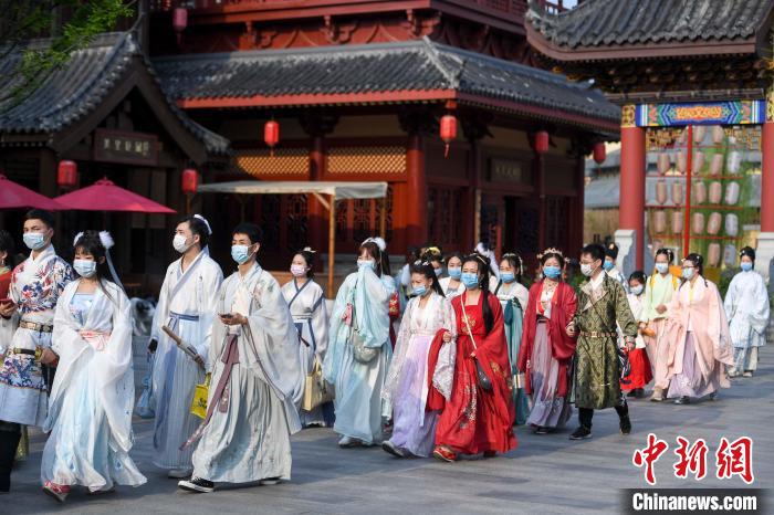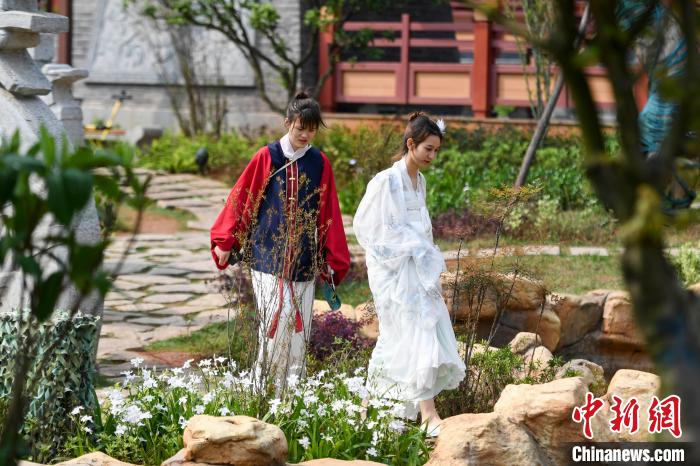 3月26日,正值農歷三月三中國華服日,眾多華服愛(ài)好者身著(zhù)各式華服在長(cháng)沙方特內結伴而行,向大家展示中華民族獨特文化魅力的系列服裝服飾。