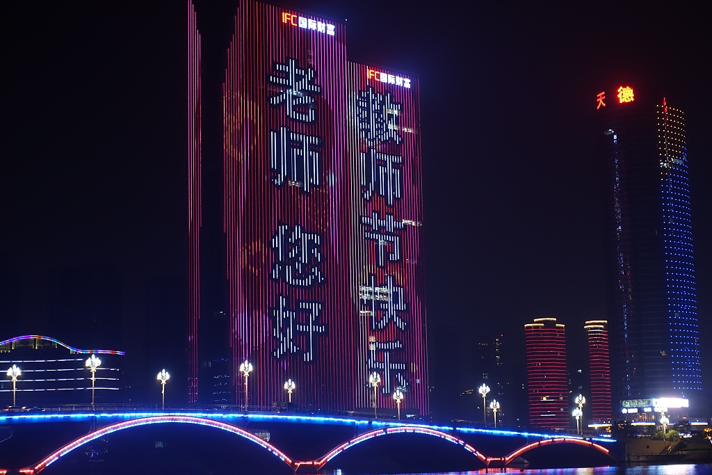 2020年9月10日,中國迎來(lái)第36個(gè)教師節,各地上演教師節主題城市燈光秀,向教師致敬。