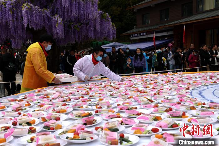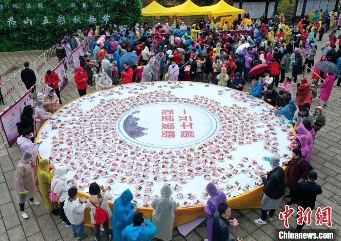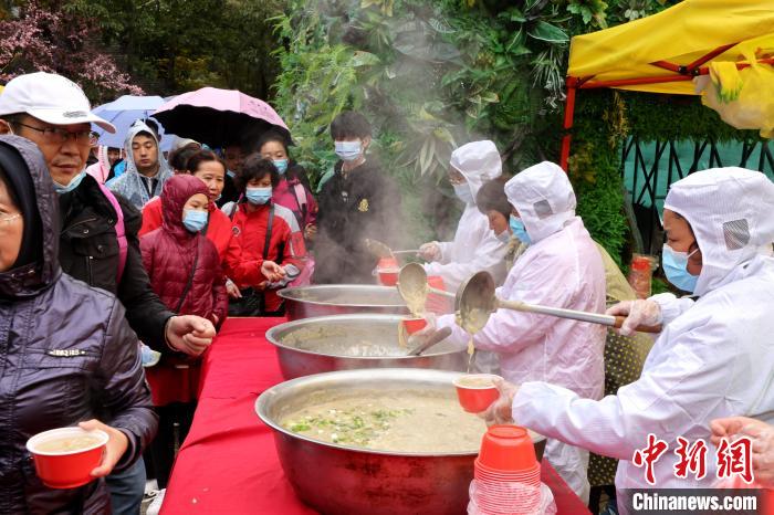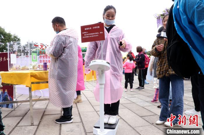 在現場(chǎng)大家一起宣誓"珍惜糧食、拒絕浪費”,工作人員引導游客保持距離,分時(shí)放行,有序就餐,F場(chǎng)依然是無(wú)人值守,每位一元,自覺(jué)投幣自助找零,今年在錢(qián)箱上增設了掃碼付費。在入口和出口處設立了電子秤,自助稱(chēng)體重,并附上溫馨提醒建議進(jìn)食重量控制在1500克以?xún),科學(xué)飲食。在食物配置上,今年主食依然是當地特色的玉米糊涂面,并有黃瓜段、圣女果、鵪鶉蛋等配餐,因為今年國慶假期恰逢中秋,景區又特意贈送一塊月餅。食物設置不同的份量,饅頭分大小饅頭、主食面條也有一份和半份之分,一份為750克半份為500克,個(gè)人適量自取,避免浪費。