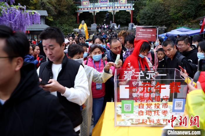 10月4日,河南洛陽(yáng),無(wú)人值守一元午餐在老君山景區持續上崗,從今年的國慶長(cháng)假開(kāi)始,這已經(jīng)是第四天供應一元午餐了,也是該景區國慶假期連續推行一元午餐的第四年。
