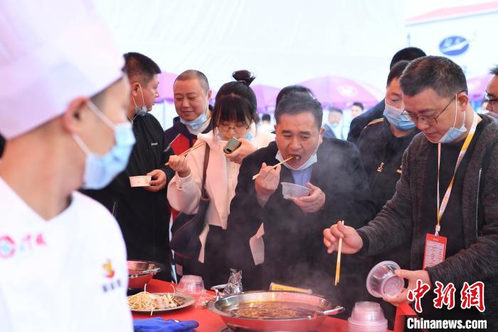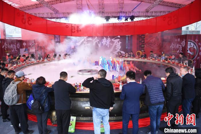 10月16日,巨型火鍋亮相重慶火鍋美食文化節,可同時(shí)容納下50人左右一同開(kāi)燙。當日,第十二屆中國(重慶)火鍋美食文化節暨國際食材博覽會(huì )在重慶悅來(lái)國博中心舉行,吸引了50余家火鍋企業(yè)以及600余家食材商參展。
