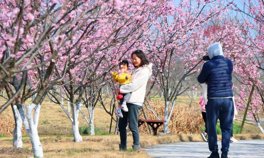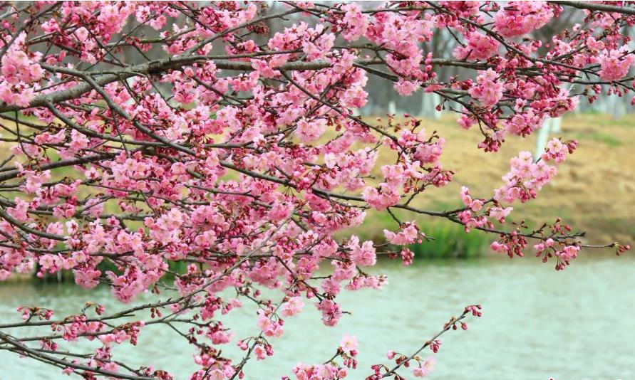 2月18日,在湖北省枝江市問(wèn)安鎮同心花海,盛開(kāi)的櫻花吸引了眾多游客與市民前來(lái)賞花。春節期間,枝江市基本都是晴好天氣,氣溫逐漸回暖,加上同心花海內栽種的櫻花經(jīng)過(guò)馴化以后,逐漸適應了本地氣候,因此早早開(kāi)放。