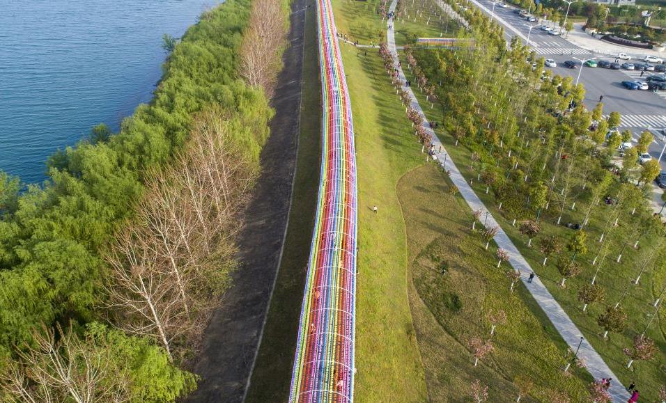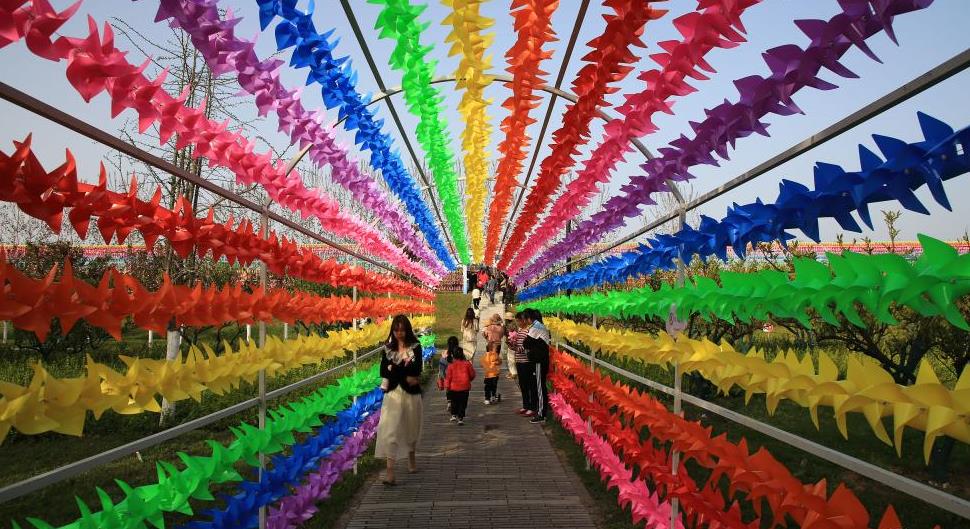 壯闊美景:湖北襄陽(yáng)10萬(wàn)風(fēng)車(chē)搭建300米彩虹長(cháng)廊