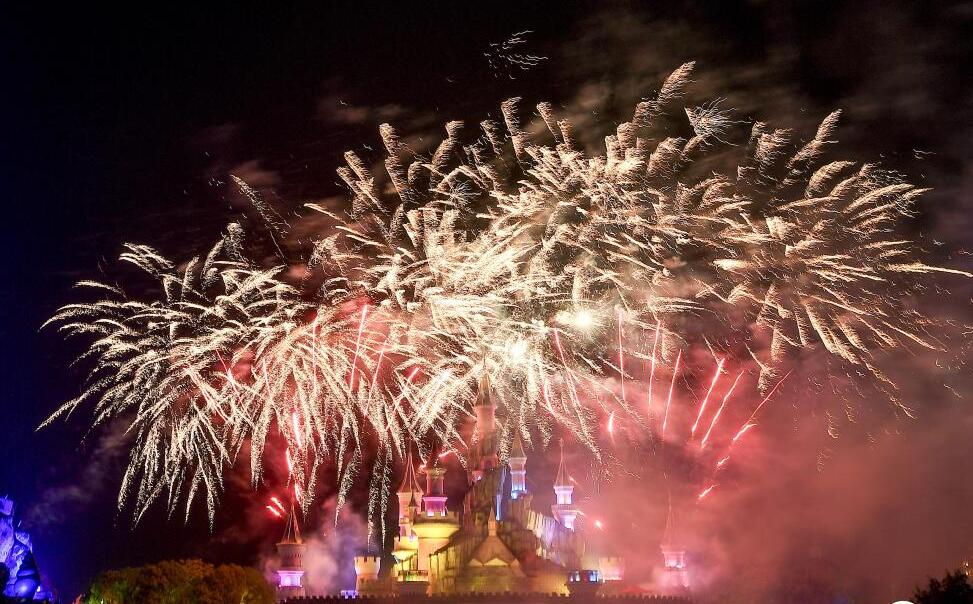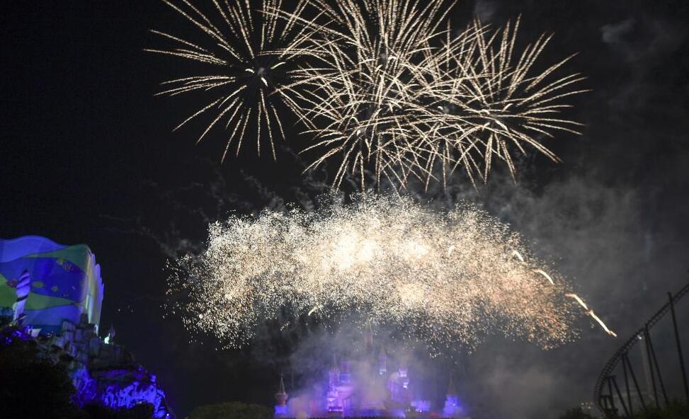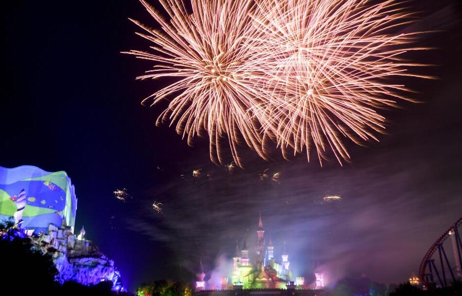 5月2日晚,湖南株洲,當地一家游樂(lè )園舉行“二次元”城堡煙花秀,煙花在動(dòng)畫(huà)般的城堡上空綻放,吸引眾多游人駐足欣賞。