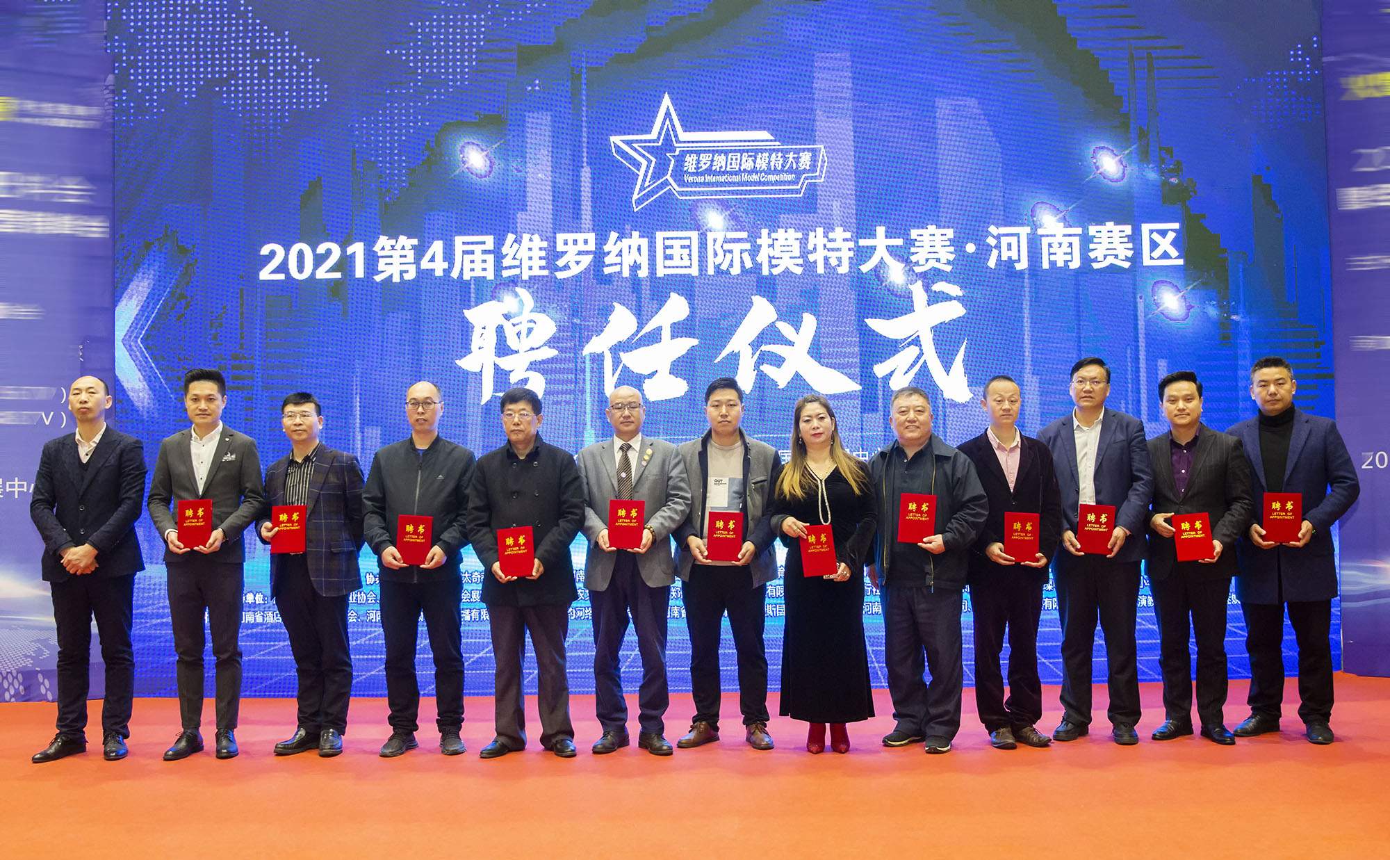 聘任儀式上,維羅納國際模特大賽組委會(huì )秘書(shū)長(cháng)徐偉先生分別為河南省豫商文化促進(jìn)會(huì )會(huì )長(cháng)徐軍昌先生、河南省酒店餐飲業(yè)管理專(zhuān)委會(huì )名譽(yù)會(huì )長(cháng)姚中生先生、河南省婚慶服務(wù)行業(yè)協(xié)會(huì )執行會(huì )長(cháng)陳平衡先生、中國經(jīng)濟新聞聯(lián)播新聞中心主任屈偉林先生、鄭州光之影文化傳媒有限公司董事長(cháng)李繼利先生、文正健康產(chǎn)業(yè)集團河南有限公司總經(jīng)理巴黎女士、河南知青協(xié)會(huì )會(huì )長(cháng)馮笑冬先生、河南康輝國際旅行社有限公司副總經(jīng)理王相鋒先生、京師律師事務(wù)所主任律師亢銀忠先生、著(zhù)名營(yíng)銷(xiāo)策劃專(zhuān)家/左右手雙手書(shū)法家宋玉剛先生、著(zhù)名營(yíng)銷(xiāo)策劃專(zhuān)家/寬澤生態(tài)農業(yè)公司董事長(cháng)武學(xué)濤先生等嘉賓頒發(fā)了2021第4屆維羅納國際模特大賽河南賽區大賽顧問(wèn)證書(shū);維羅納國際模特大賽組委會(huì )執行總監張會(huì )玲女士分別為河南省禮儀文化發(fā)展促進(jìn)會(huì )常務(wù)副秘書(shū)長(cháng)孔令君女士、捷斯國際貿易有限公司聯(lián)合創(chuàng )始人張旌華女士、ACI國際注冊高級禮儀講師王瑞女士、賽美國際時(shí)尚美學(xué)教育校長(cháng)劉賽女士頒發(fā)2021第4屆維羅納國際模特大賽河南賽區大賽評委證書(shū)。