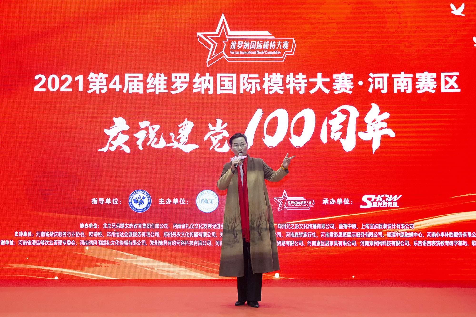 儀式上,河南省豫商文化促進(jìn)會(huì )會(huì )長(cháng)徐軍昌先生在致詞中講到:“首先回顧了維羅納國際模特大賽從第一屆到第三屆與大賽的合作歷程,見(jiàn)證了維羅納國際模特大賽自2018年在河南鄭州成功落地以來(lái),經(jīng)過(guò)河南賽區組委會(huì )全體工作人員的不斷努力,成為聯(lián)動(dòng)全省影響全國的專(zhuān)業(yè)賽事,特別是2020年疫情肆虐的情況下,很多大型活動(dòng)及模特大賽被迫取消,維羅納國際模特大賽河南賽區組委會(huì )嚴格要求,注重每一個(gè)工作細節,河南賽區比賽仍然圓滿(mǎn)完成,此舉得到行業(yè)、企業(yè)、社會(huì )的認可、支持和贊譽(yù)。維羅納國際模特大賽在河南的發(fā)展及成績(jì)離不開(kāi)河南賽區組委會(huì )全體工作人員的努力,他們的耐力、韌性、拼勁、闖勁是在場(chǎng)的企業(yè)、創(chuàng )業(yè)者值得去學(xué)習的。大家都知道,今年是中國共產(chǎn)黨建黨一百,黨的建設、發(fā)展過(guò)程就是一部勵志史,是每個(gè)創(chuàng )業(yè)者、企業(yè)家應該學(xué)習的精神,一同跟黨去創(chuàng )業(yè),就一定能創(chuàng )業(yè)成功!維羅納國際模特大賽河南賽區組委會(huì )團隊的創(chuàng )業(yè)精神、工作精神就是共產(chǎn)黨艱苦奮斗、勇往直前、敢作敢為的創(chuàng )業(yè)精神!”